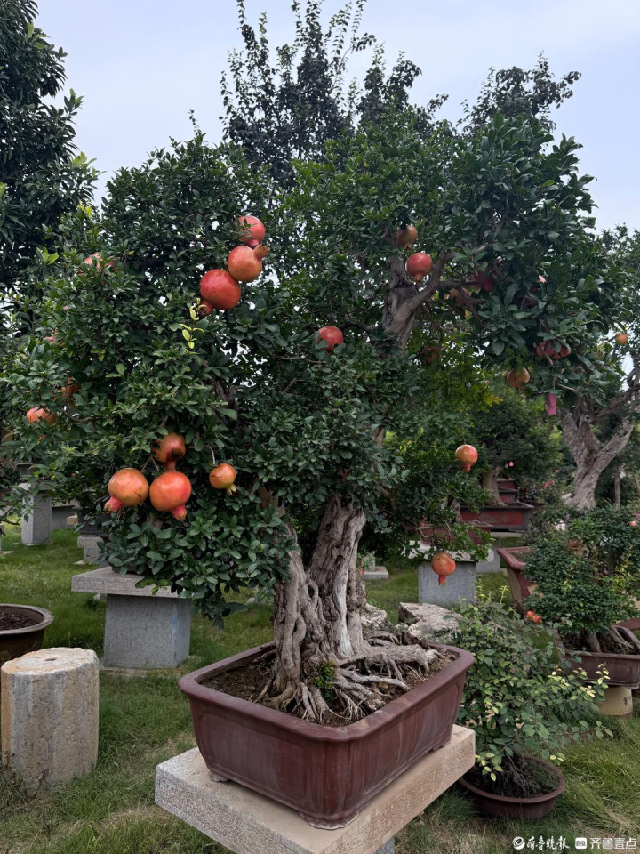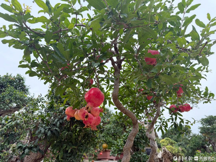 峄城的石榴产业,还在“小盆景” 里做出了“大文章”。万景园盆景园与盛景园两大基地,擦亮了 “全国石榴盆景之都” 的名片。万景园自上世纪90年代起步,经30余年发展,占地50余亩,培育40多个品种、1万余盆石榴盆景,年销售额达200余万元,作品累计斩获国家级金奖8个,负责人张忠涛更获评“国际盆景大师”,并牵头成立盆景协会搭建交流平台。盛景园则聚焦小微盆景,2011年创办以来,占地25亩,培育 “粉精灵”“血宫灯” 等近20个稀有品种,年销售5000余盆、销售额80余万元,通过线上直播与线下合作,让“指尖盆景”成为农户增收的“绿色钥匙”。