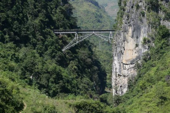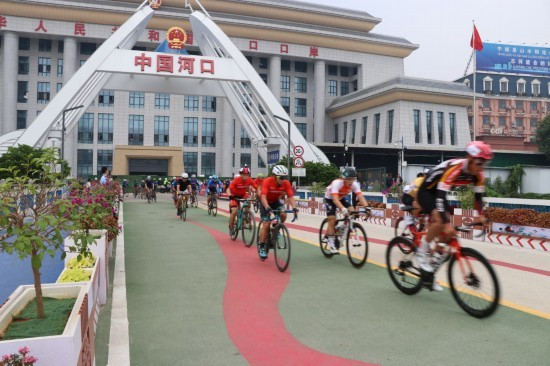 中越“两国一赛道”国际自行车赛。运动员在比赛中横穿中越友谊大桥。